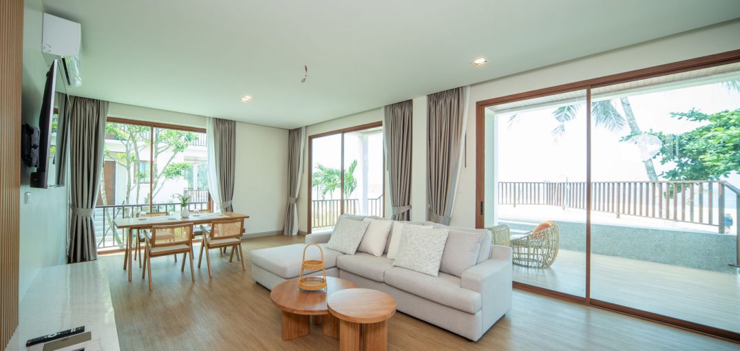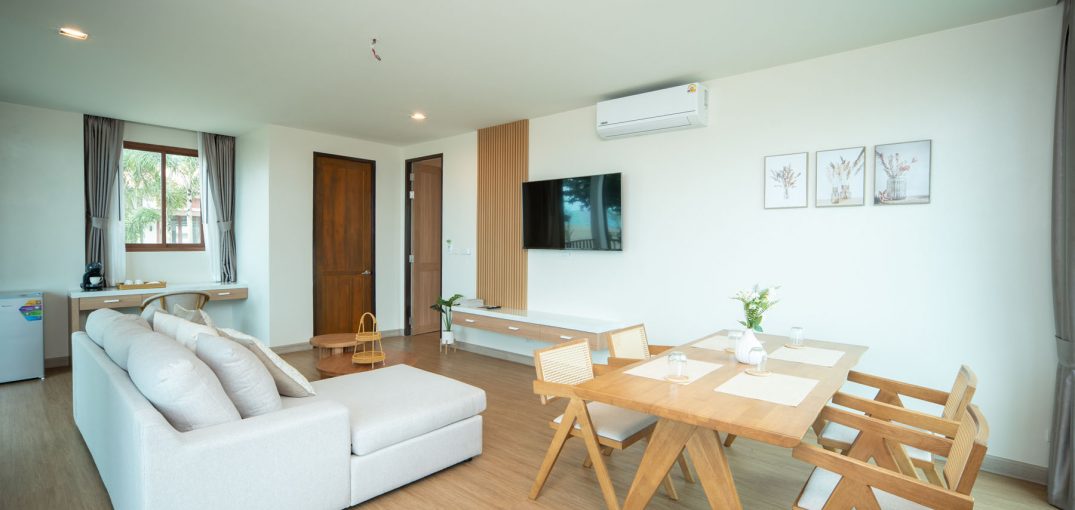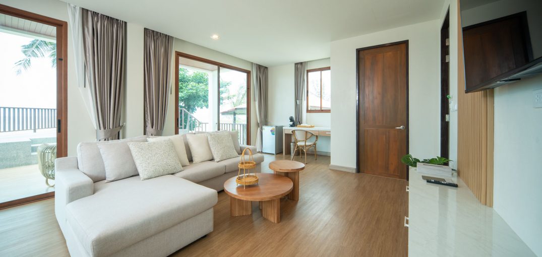 Indulge in luxury with breathtaking sea views in our suite-style villa. Featuring a separate living area and bedroom, it comfortably accommodates up to 4 guests. Step out onto the spacious balcony to enjoy the refreshing ocean breeze and unwind in complete serenity throughout your stay.